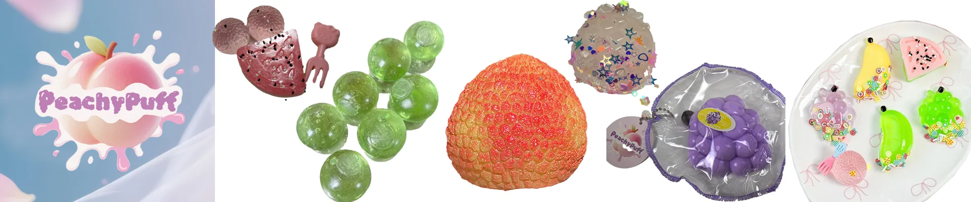 Crystal Fruit Serise Stress-Relife pinch- Peach. Grape. Tangerine. Strawberry,