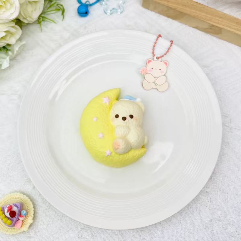 PeachyPuff Goodnight Moon Bunny Squishy is super touching! The little rabbit is either lying down on a yellow crescent moon or curled up on a pink ball, with a fluffy and cute appearance, surrounded by stars. Wrapped in an exquisite transparent package, it’s soft and squishy, extremely stress-relieving to squeeze. It accompanies you to relieve stress in cuteness and drift into a sweet dreamland.